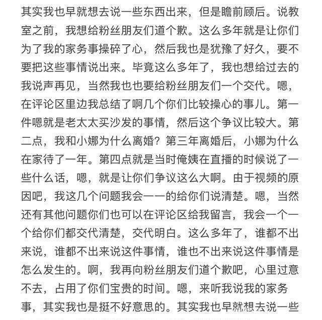 在大牛的视频里,跟大家提到了三个问题,第一是关于沙发的事情,第二是小姨在直播时,所说的一些话,第三,关于两人在离婚之后,小娜为何还在家里住了一年,第四还有两人离婚的真实原因等等! 大牛说:对于这几个问题,似乎是大家比较关心的点,所以,自己也会发视频跟大家一一说明!
